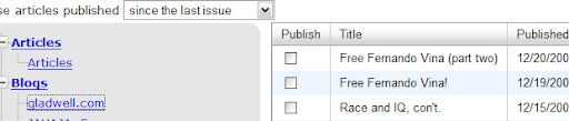 - Quick selection of articles to publish: "Everything since the last issue", or "all articles published during the last X days".